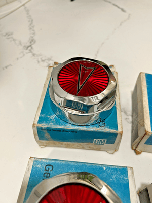 GM NOS 1982-1987 Pontiac Grand Prix Bonneville Rally Center Hub Cap 10044153 set