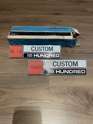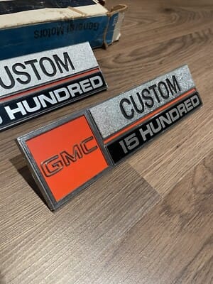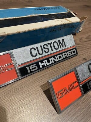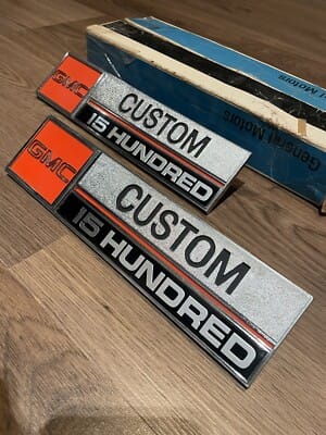 NOS 1973 1974 GMC Custom 1500 Truck Fender Emblems Set