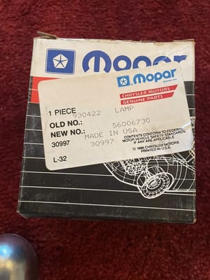 NOS DODGE MOPAR UNDERHOOD LAMP 56006730
